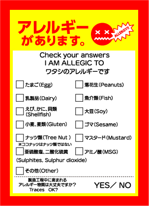 To be fun and safe in Japan, Get ALLERGY CARD and let them know yourself.
